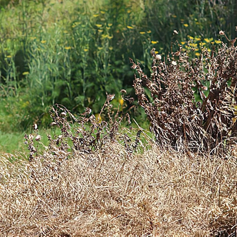 Allow vegitation to fully die back before clearing or the roots will not be killed and the weed will reappear.