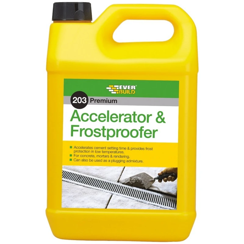 Everbuild 203 5 Litre accelerator and frost proofer a concrete mortar render admixture a liquid dual additive for mortar, concrete, screed and rendering.