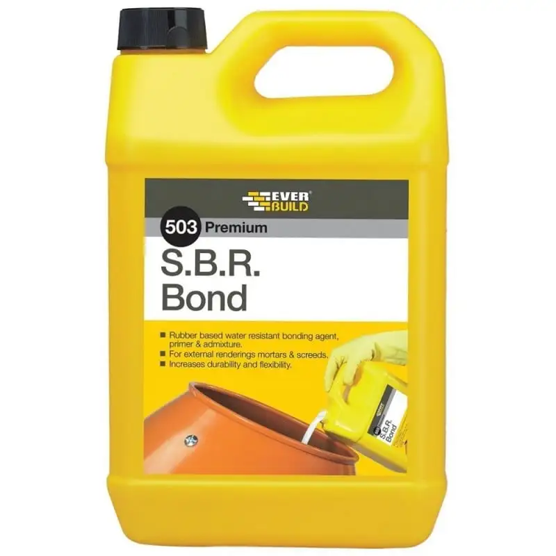 - 503 SBR Bond from Everbuild is a liquid, which has numerous uses as an Admixture, primer, bonding agent and sealer.