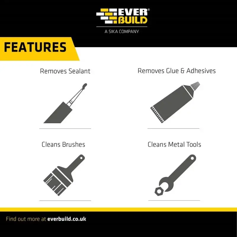 Cleans wet and semi-cured paints, sealants, adhesives, bitumen, polyurethanes, expanding foams, polyester fillers and epoxies and bacteria from hands, tools and surfaces.