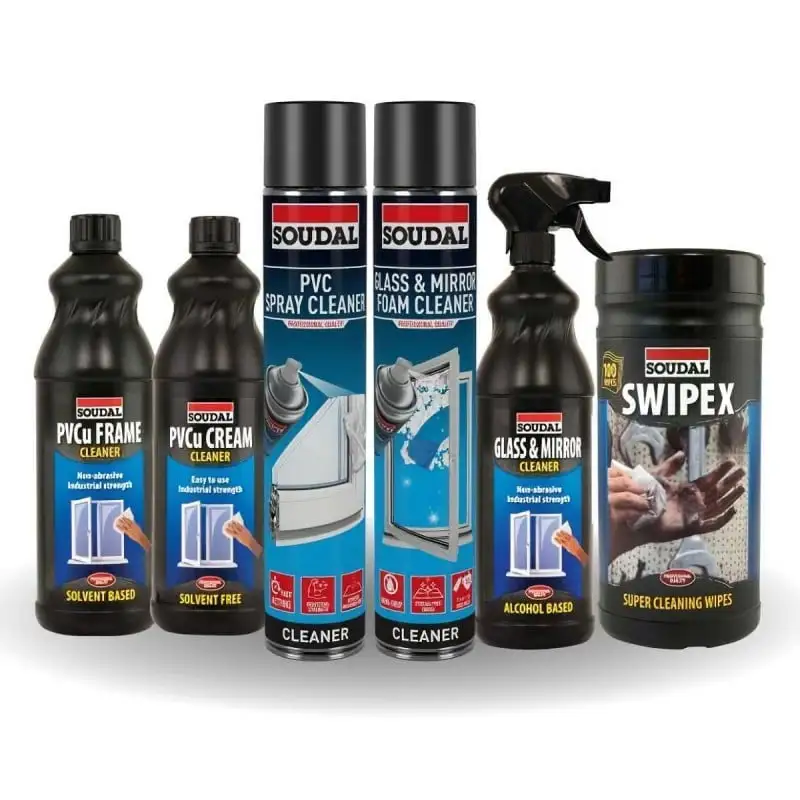 - Soudal PVCU frame solvent cleaner is a powerful product always test a small inconspicuous area prior to use to ensure compatibility and colour fastness.